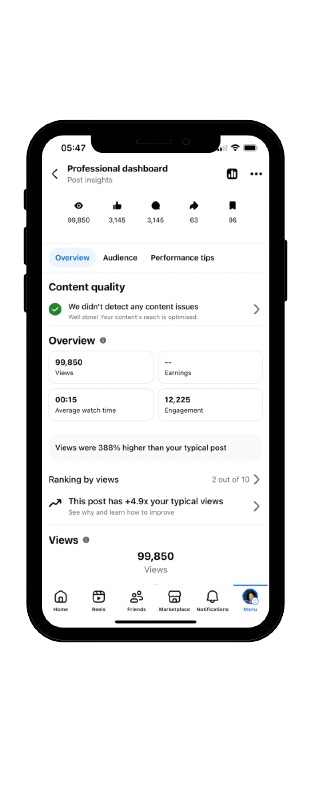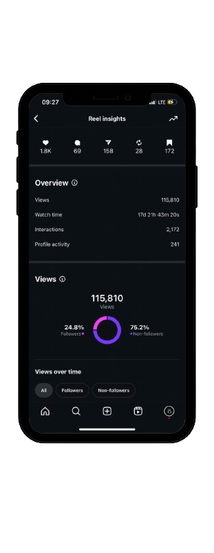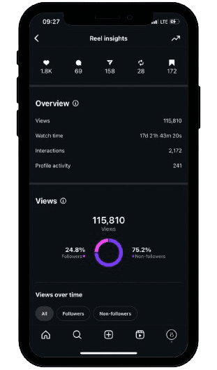 We track key metrics such as engagement rate, reach, views, follower growth, website clicks, and conversions. You’ll receive regular reports with insights on what’s working and recommendations for next steps.